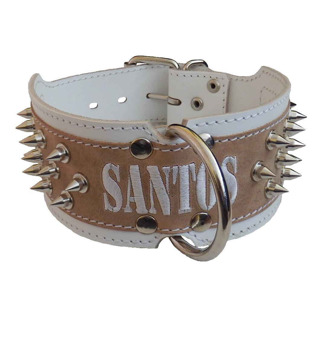 Barion Pixel OBOJKY | Obojok kožený 6cm s výšivkou+hroty - biely, hnedý | PITBULL-SHOP - oblečenie, potreby pre psa
