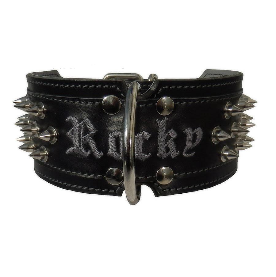 Úvod »OBOJKY»Kožené s výšivkou»6cm » Obojok kožený 6cm s výšivkou+hroty - čierny