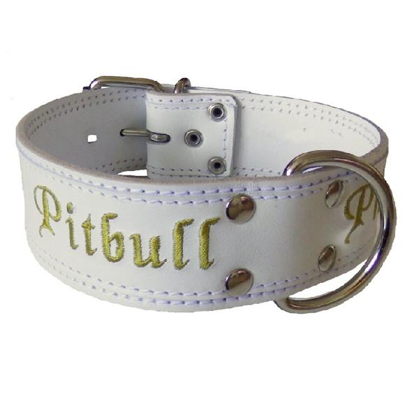 Barion Pixel OBOJKY | Obojok kožený 8cm s výšivkou - biely | PITBULL-SHOP - oblečenie, potreby pre psa