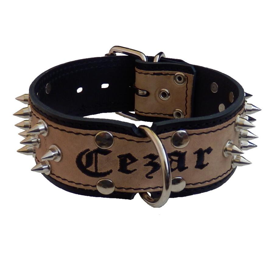 Úvod »OBOJKY»Kožené s výšivkou»8cm » Obojok kožený 8cm s výšivkou+hroty - čierny, hnedý