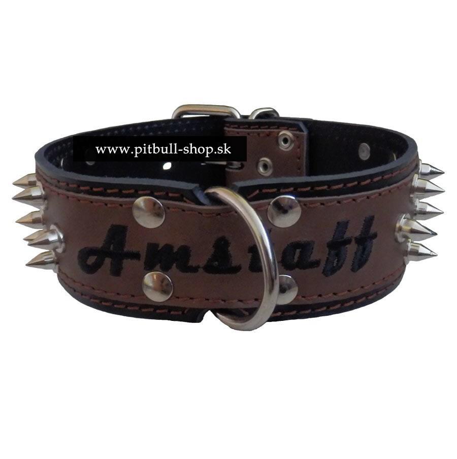 Barion Pixel OBOJKY | Obojok kožený 8cm s výšivkou+hroty - čierny, hnedý | PITBULL-SHOP - oblečenie, potreby pre psa