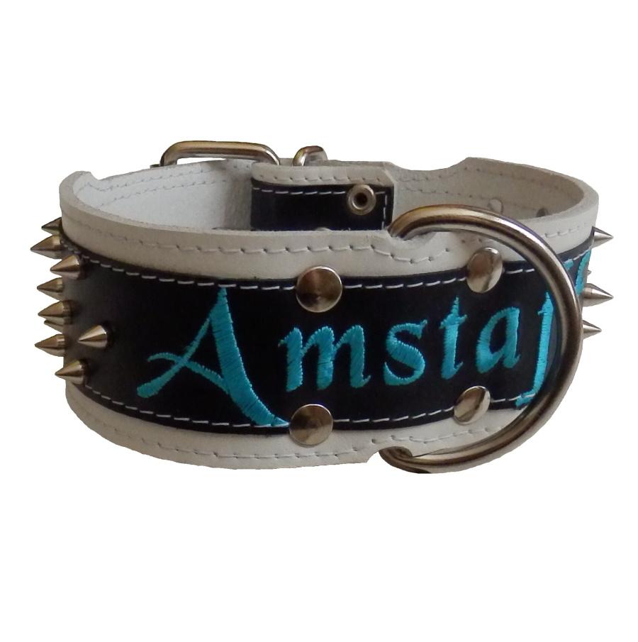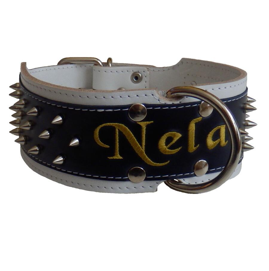 Úvod »OBOJKY»Kožené s výšivkou»8cm » Obojok kožený 8cm s výšivkou+hroty - biely, čierny