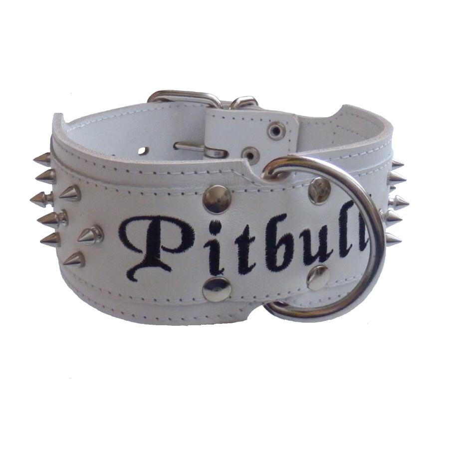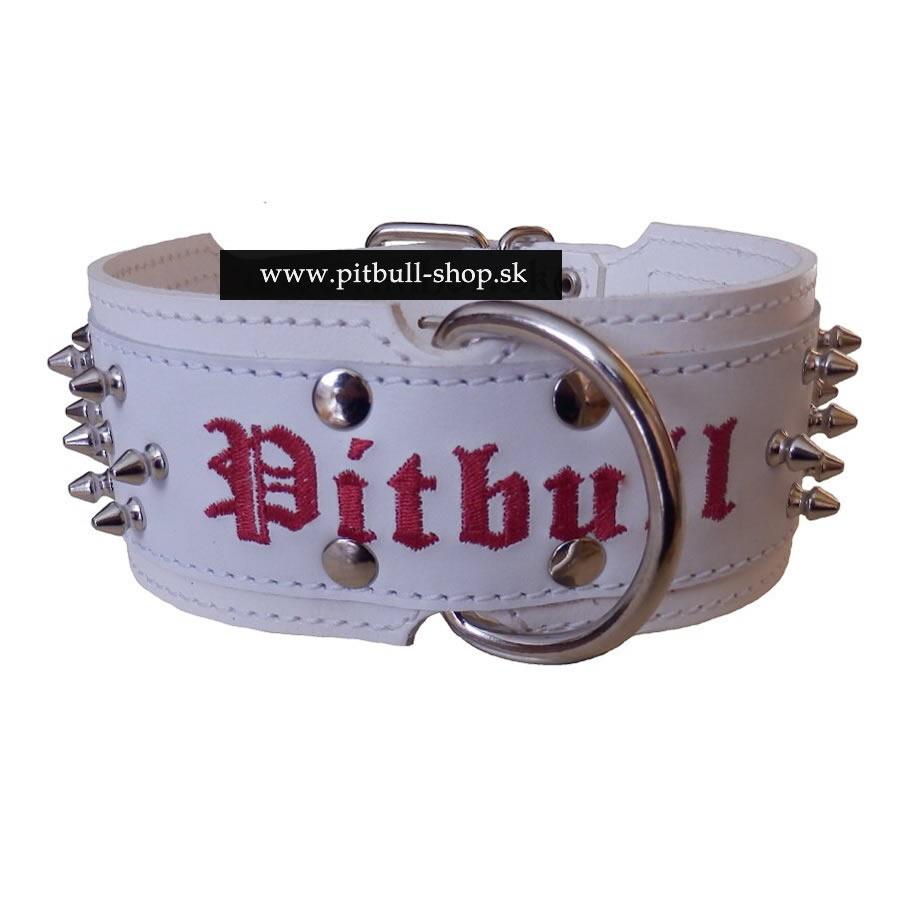 Barion Pixel OBOJKY | Obojok kožený 8cm s výšivkou+hroty - biely | PITBULL-SHOP - oblečenie, potreby pre psa