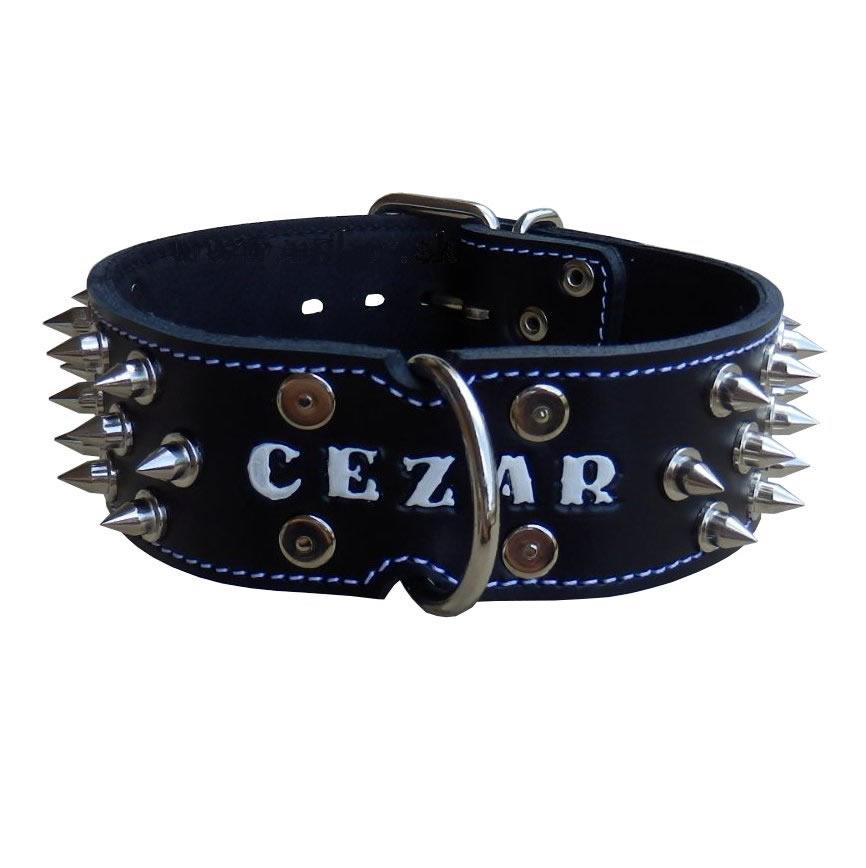 Úvod »OBOJKY»Kožené zdobené»5 cm » Obojok kožený 5cm s menom+ostne - čierny
