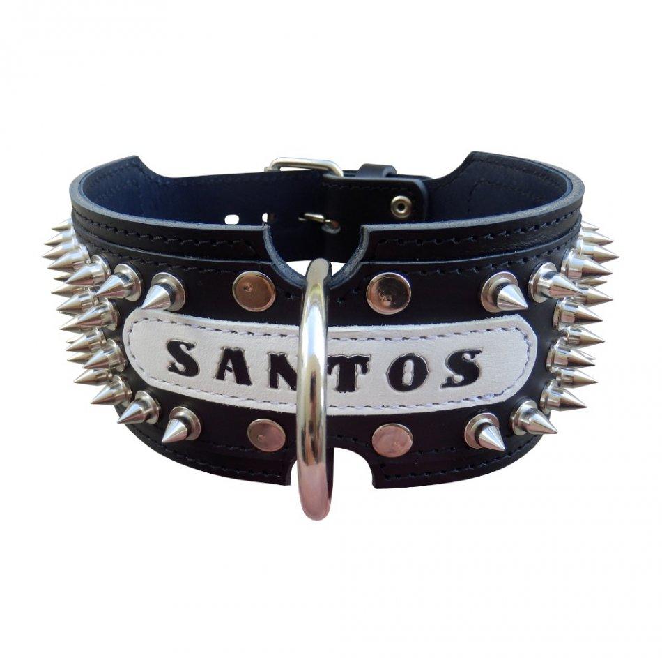 Úvod »OBOJKY»Kožené zdobené»5 cm » Obojok kožený 5cm s menom + ostne - čierny