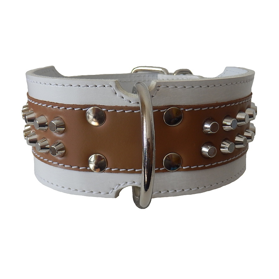 Úvod »OBOJKY»Kožené zdobené»5 cm » Obojok kožený 5cm + kúžele - biely, hnedý