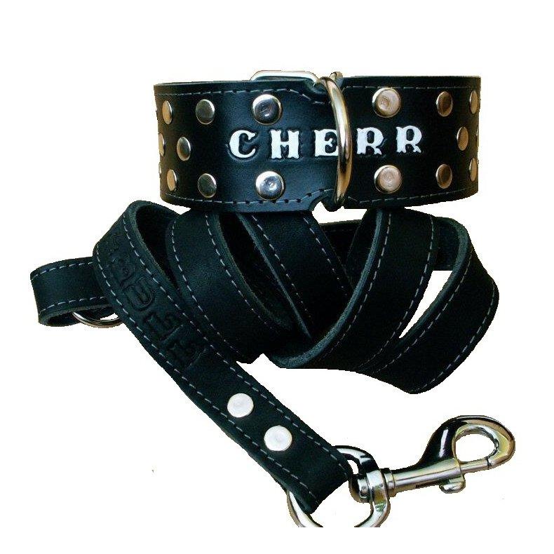 Úvod »OBOJKY»Kožené zdobené»5 cm » Obojok kožený 6cm s menom + nity - čierny