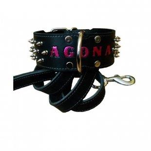 Úvod »OBOJKY»Kožené zdobené»5 cm » Obojok kožený 5cm s menom + ostne - čierny