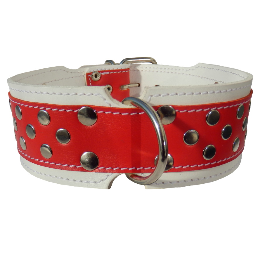 Úvod »OBOJKY»Kožené zdobené»6 cm » Obojok kožený 6cm + nity - biely, červený