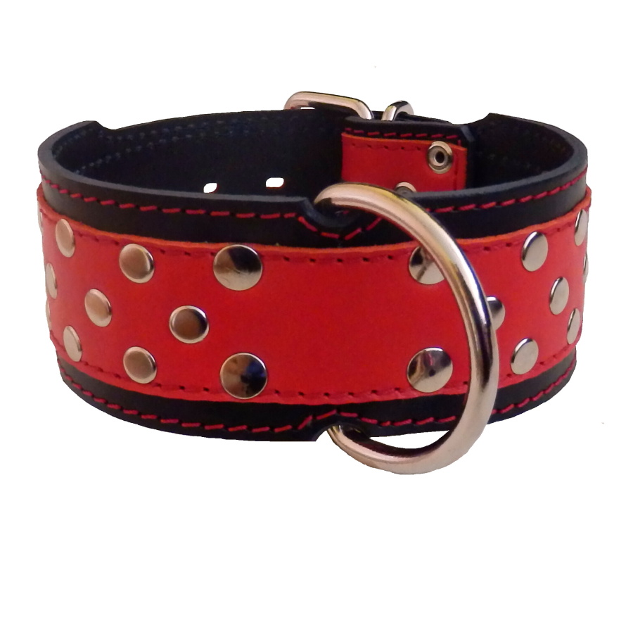 Úvod »OBOJKY»Kožené zdobené»6 cm » Obojok kožený 6cm + nity - čierny, červený