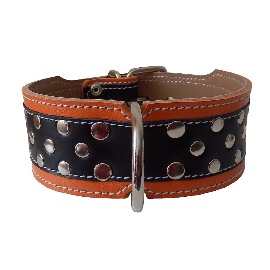 Barion Pixel OBOJKY | Obojok kožený 6cm + nity - oranžový, čierny | PITBULL-SHOP - oblečenie, potreby pre psa