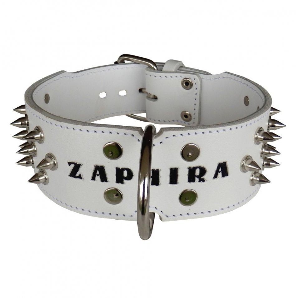 Úvod »OBOJKY»Kožené zdobené»6 cm » Obojok kožený 6cm s menom + ostne - biely