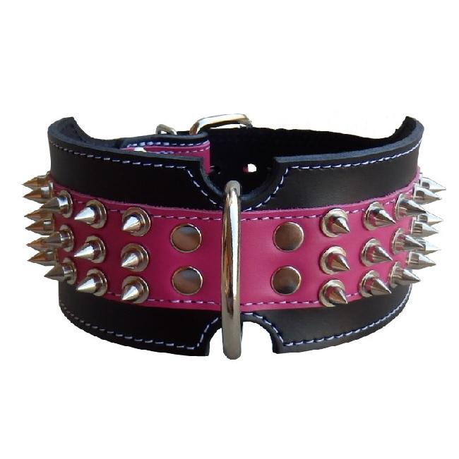Úvod »OBOJKY»Kožené zdobené»6 cm » Obojok kožený 6cm + ostne - čierny, fialový