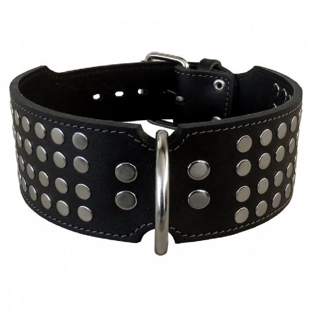 Úvod »OBOJKY»Kožené zdobené»6 cm » Obojok kožený 6cm + nity - čierny