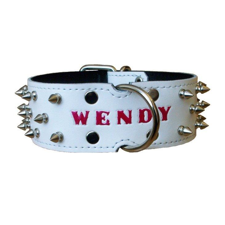 Úvod »OBOJKY»Kožené zdobené»6 cm » Obojok kožený 6cm s menom + ostne - biely