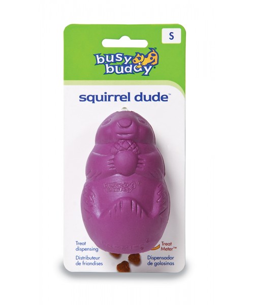 Hračka pre psa Squirrel Dude™. Veverička Dude je extrémne odolná na hryzenie. Na spodnej strane má hračka otvor a gumové hroty, ktoré sa dajú nastaviť-zrezať alebo odstrihnúť na veľkosť podľa toho aké odmeny používate. Odmeny potom postupne vypadávajú ako sa psík s hračkou hrá. Vyrobené z prírodného kaučuku.