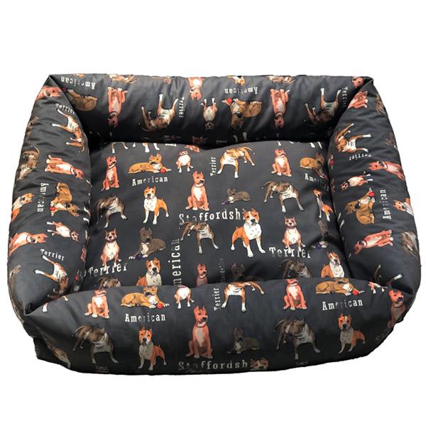 Pelech Amstaff je vytvorený predovšetkým pre fanúšikov a majiteľov plemena American Stafforshire. V ponuke máme dve veľkosti L a XL, ktoré odvedajú veľkosti týchto psov. Pelech je potiahnutý látkou Trinity, čo je mäkká velúrová tkanina, ktorá je vysoko odolná a pevná. Má nízku absorpciu kvapalín a je odolná voči žmolkovaniu.